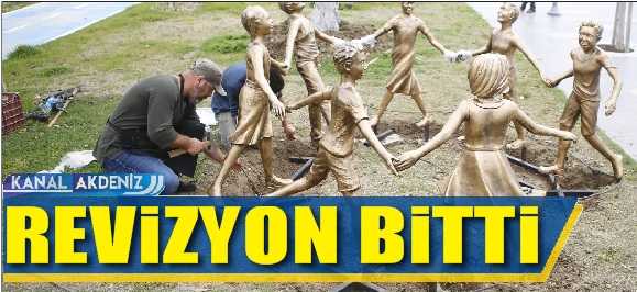 El ele tutuşan çocuk heykelleri onarıldı